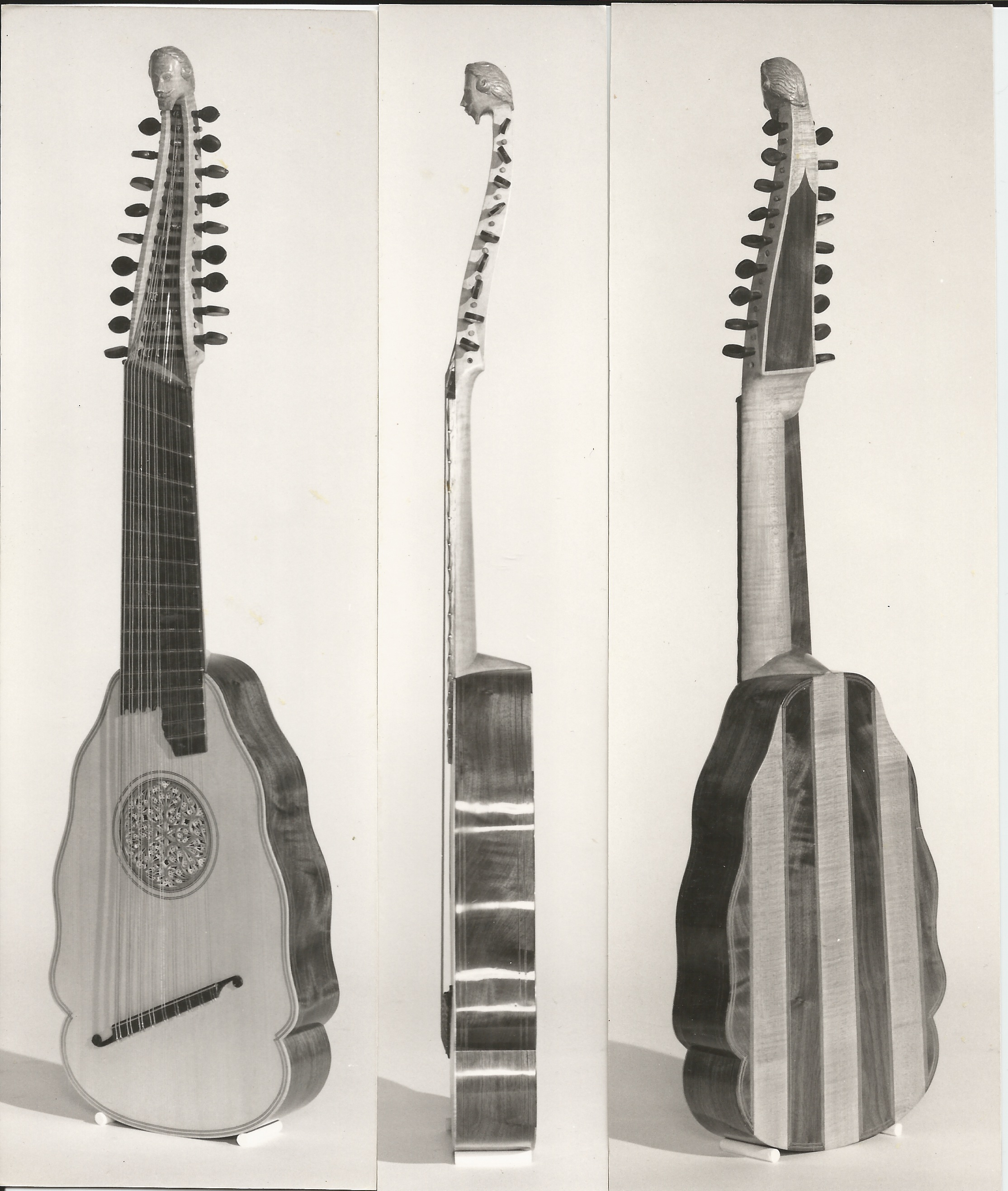 In the lower photo, Jacob Lundburg is trying out his new Bandora in my workshop beside the London Early Music Center. That’s me in the upper photo, playing the Lute beside the Paris Vihuela replica at an invitational exhibition of Instrument Makers in Jerusalem.