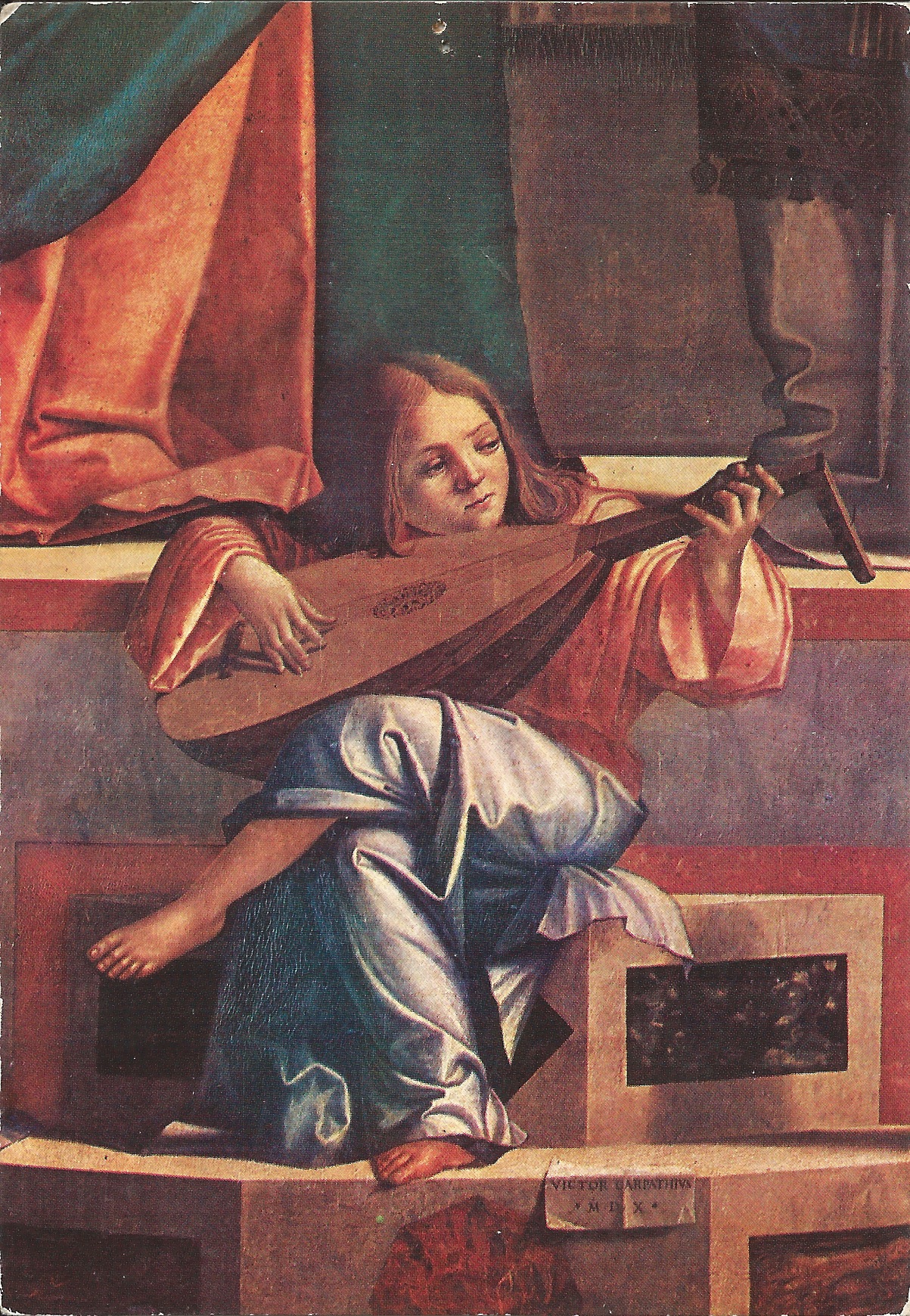 Detail of Angel with Lute from “The Presentation at the Temple” by Vittore Carpaccio, Venice Gallery of the Academy. One of my favorite postcards that has been with me all my Luthier career. ← Previous Share this: Share on Facebook (Opens in new window) Facebook Share on X (Opens in new window) X Like Loading...